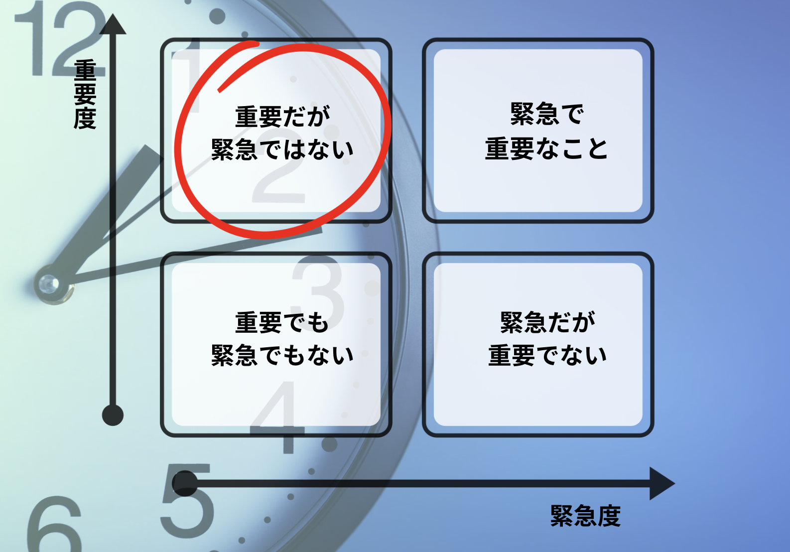 もう一つ、私が大切にしている考え方があります。それが「重要度と緊急度のマトリクス」