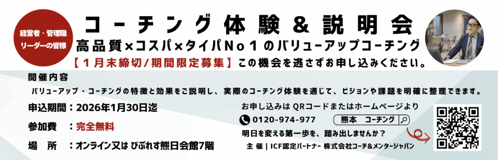 経営者・管理職・リーダーの皆様へ。 あなた自身を変える、この機会を逃さないでください。